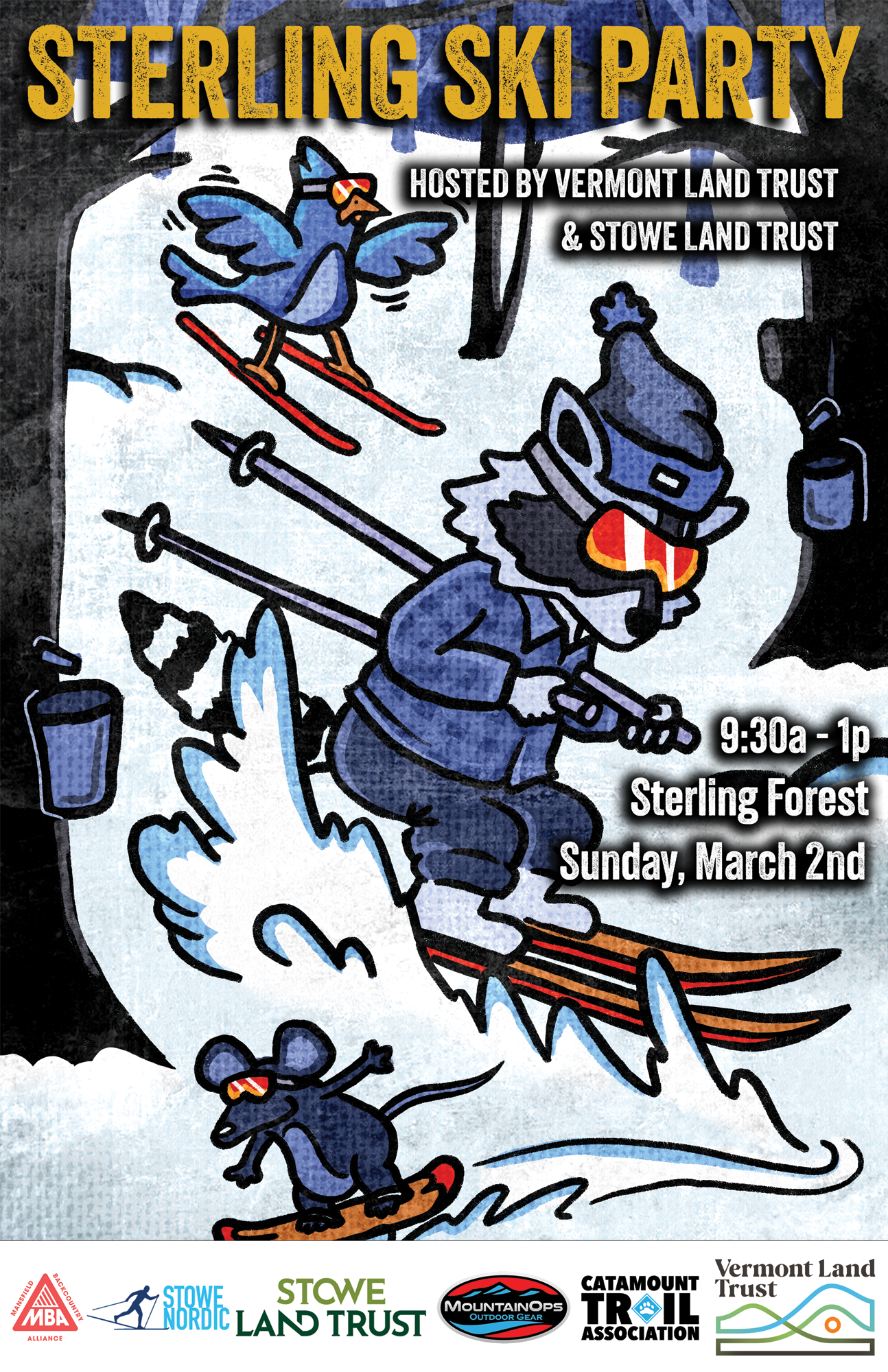 Don’t have the right gear or curious to try something else? Mountain Ops will be offering free demos of various types of skis to get you into the woods. Don't have a set up? Contact Mountain Ops and they will be happy to set you up free of charge. We’ll also have representatives from the Catamount Trail Association and Stowe Nordic to help you learn about trails to ski both in Sterling Valley and beyond. Plus learn about how VLT and SLT help protect the places you love to play outside!