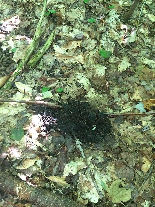 Animal paths often intersect with or directly follow the boundary line. I have tracked mink along the banks of creeks and seeps, their tiny cute toes pressing into the mud to deftly chase down their prey. Piles of pellets radiated out of a downed hollow tree, indicating the porcupine family nestled inside. A strong skunky odor and a wet stain where a faint path crossed the boundary announced the route of a red fox. A red squirrel chittered as he dropped a gnawed mushroom onto my shoulder, ushering me to move on and away from his territory. A pile of tarlike sludge pocked with berry pits and a deep scratch in a beech tree were left in the wake of a black bear.