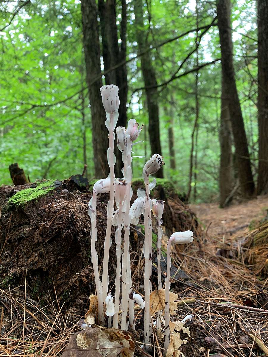 On one of my final outings with MudCity Adventures, we did a quick exploration through <link conserved properties wiessner-woods>Wiessner Woods looking for amphibians, visiting the gnomes, and hanging out at the sugarhouse. During our time there, we found several red-backed salamanders (Plethodon cinereus), an American toad (Anaxyrus americanus), and ghost pipe (Monotropa uniflora). The ghost pipe (also known as Indian pipe) is a white wildflower that upon first glance looks a lot like fungi. The wildflower is completely white and has no chlorophyll whatsoever. You’re probably thinking “How does this plant survive if it can photosynthesize?” According to the U.S. Forest Service, this plant uses nutrients from tree roots! It does this by using a mycorrhizal fungi as a “passage way” to collect nutrients. The trees photosynthesize, and the nutrients pass through the fungi into the ghost pipe. To learn more about this process, click here.